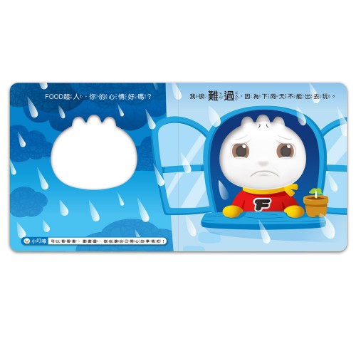 《FOOD超人寶寶情緒認知書:心情變變變》利用淺顯易懂的文字,搭配好好玩的表情雷射,可搭配不同的場合、情境、事情來改變FOOD超人的表情,同時讓孩子理解大笑、哭泣、生氣等多種原因,書中還有搭配情緒小叮嚀、小知識,說明這些情緒的成因與負面情緒的排解方式,讓孩子認識情緒,成為EQ小達人。