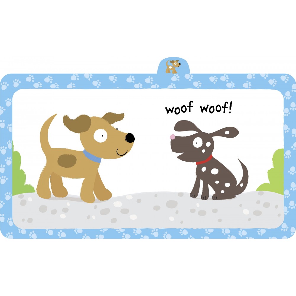 這本精美的紙板書配有發聲面板和高對比度的插圖,專為吸引嬰幼兒而設計。每幅圖畫都配有一個擬聲詞,例如“汪汪”和“嘎嘎”,寶寶可以按下發聲面板上的按鈕發出相應的聲音。