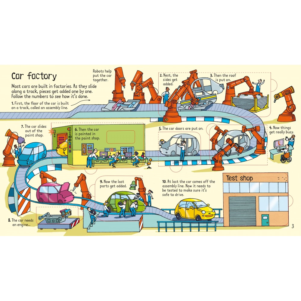 車子帶我們出去玩,為我們擋風遮雨,還幫我們取暖或消暑;它的大大肚子裝著我們、上學想分享給同學的玩具,去大賣場搬回家的各種點心食物……現在,展開書本,動手來一場紙上汽車家家酒。