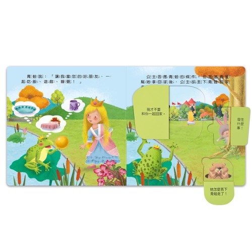 《推拉翻轉童話繪本-青蛙王子》收錄經典童話故事,搭配不同的推推、拉拉、翻翻、轉轉等多種互動遊戲機關,讓孩子身歷其境、愛不釋手,重新詮釋經典童話,具收藏價值與閱讀性,讓孩子培養閱讀的好習慣!