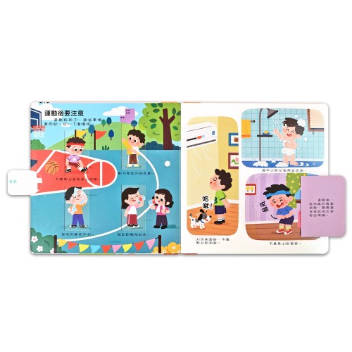 家長可在旁與孩子一起閱讀、一起使用書中各種不同的互動遊戲機關,同時在旁教導孩子正確又健康的運動習慣,學會如何在不同情境下培養健康身體,不僅可促進親子關係,也能讓孩子養成良好習慣,讓孩子快樂成長!