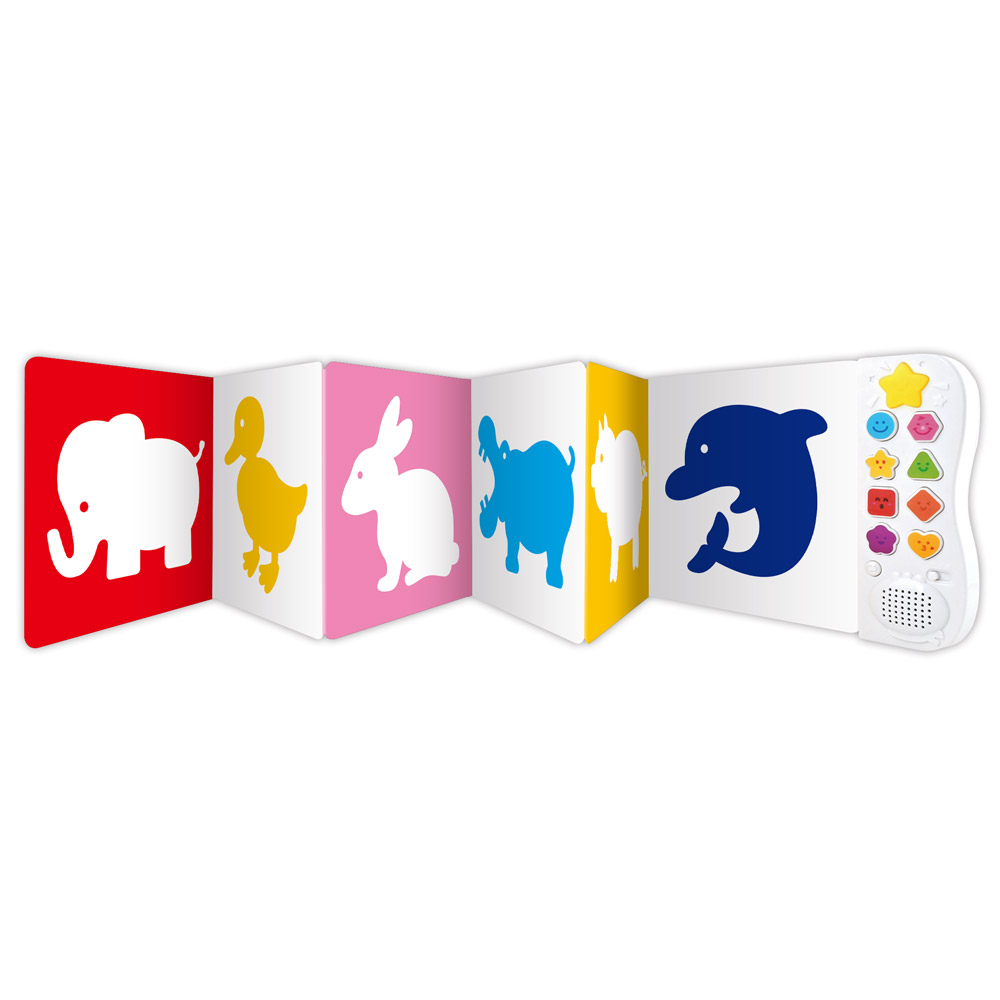 全書為長條拉頁設計,搭配8首溫馨悅耳的音樂,搭配柔和燈光的星星燈,星星的燈光會隨著音樂的節奏閃亮,有助於安撫寶寶。家長可以引導孩子觀察書中圖形,同時搭配旁邊音樂按鈕,有助於孩子感官智能刺激,強化腦力發展。