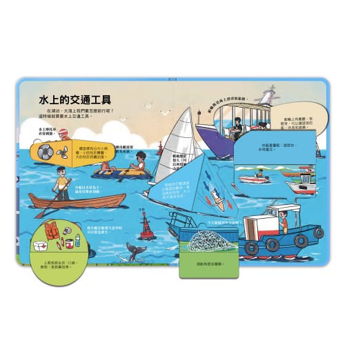 《百問百答圖解翻翻書-揭祕交通》利用淺顯易懂的文字故事內容,配合翻翻頁的問答小知識,超過30種不同的翻翻機關頁面,只要翻開來就能立刻解答疑問,帶領孩子們探索世界,開啟奇妙的探索科普之旅!