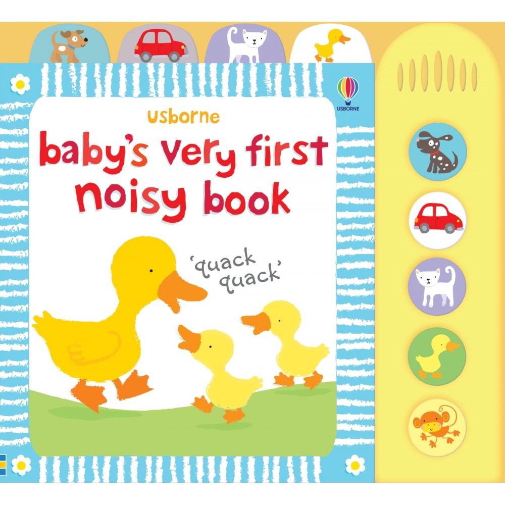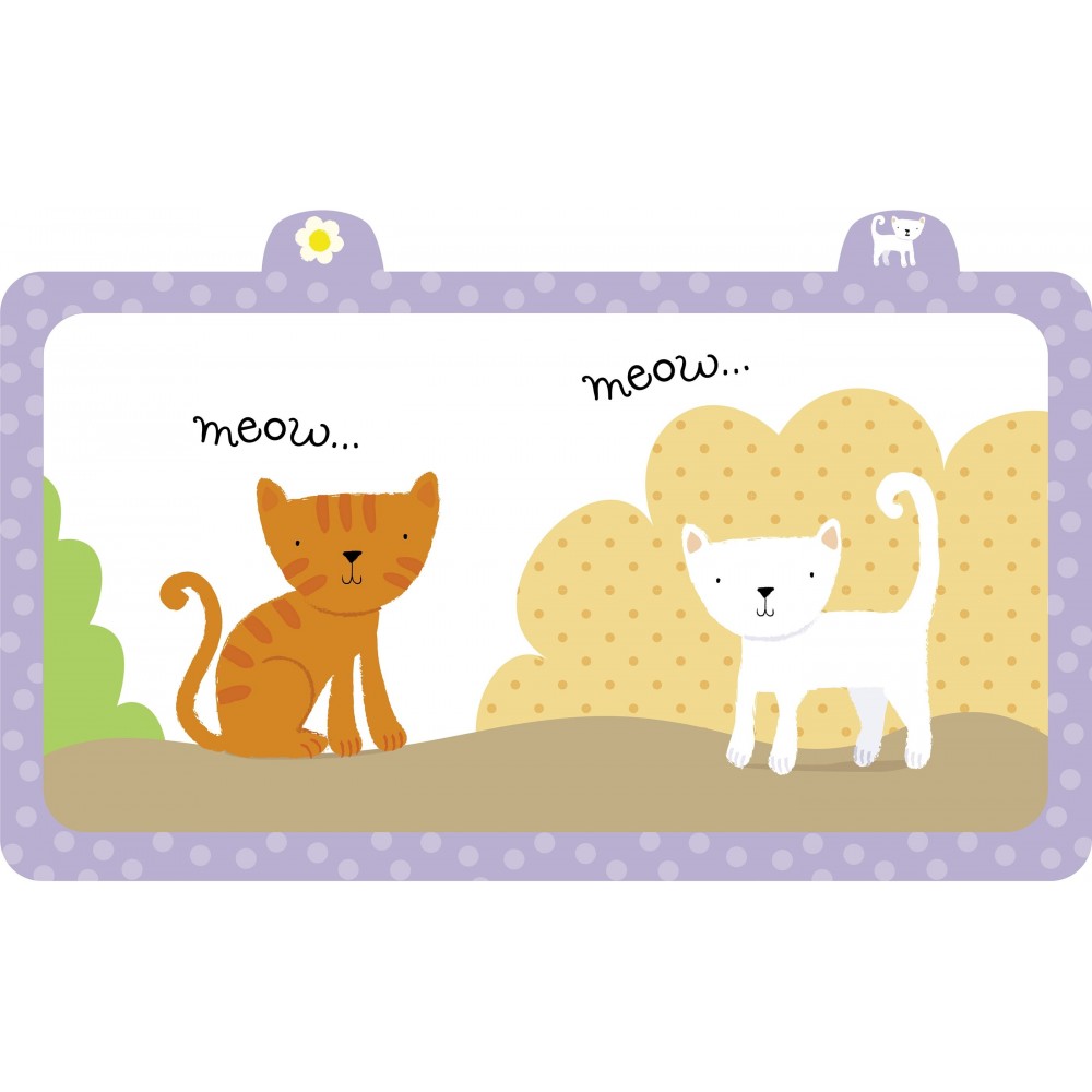 這本精美的紙板書配有發聲面板和高對比度的插圖,專為吸引嬰幼兒而設計。每幅圖畫都配有一個擬聲詞,例如“汪汪”和“嘎嘎”,寶寶可以按下發聲面板上的按鈕發出相應的聲音。