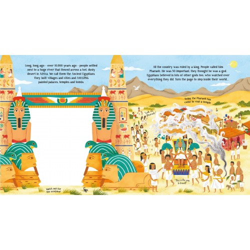 走進古埃及烈日炙烤的沙漠,探訪尼羅河畔雄偉壯麗的神廟、熙熙攘攘的城鎮,以及滿是璀璨寶藏的陵墓。這本引人入勝的書籍設計精巧,設有翻頁和鏤空設計,讓您可以透過這些精美的圖案窺探世界。您可以搭乘駁船沿著尼羅河而上,參加富人的宴會,見證法老的葬禮,還有更多精彩內容等您體驗。