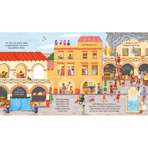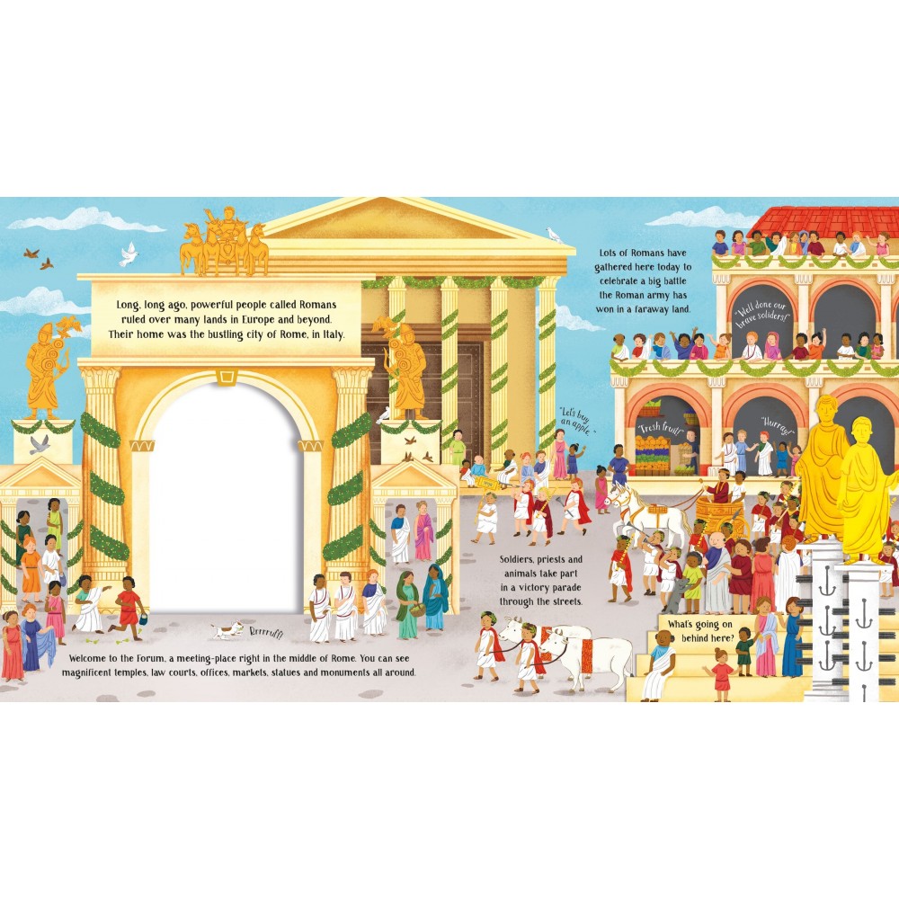 翻開精美的雷射切割書頁,探索古羅馬生活的各個層面。你會看到羅馬士兵舉行勝利遊行,市民們在浴場裡泡澡,以及角鬥士們準備戰鬥的場景。掀開書頁,你會發現鬥獸場活板門下潛伏著老虎,還能一窺羅馬公寓大樓的內部景象。
