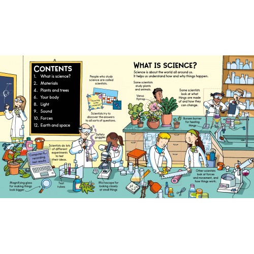 打開小翻頁,從實驗室出發,看看聰明絕頂的科學家需要什麼裝備做實驗?每天都在忙什麼?接著,探索家中,挖掘藏在各種日常用品底下的小祕密。再到戶外跑跑跳跳,感受身體表現出的運動定律;最後,咻-衝向外太空、遨遊太陽系,體驗科學深而廣闊的魅力。生命、自然、光、力、聲音、宇宙……上百種知識,一翻就通!